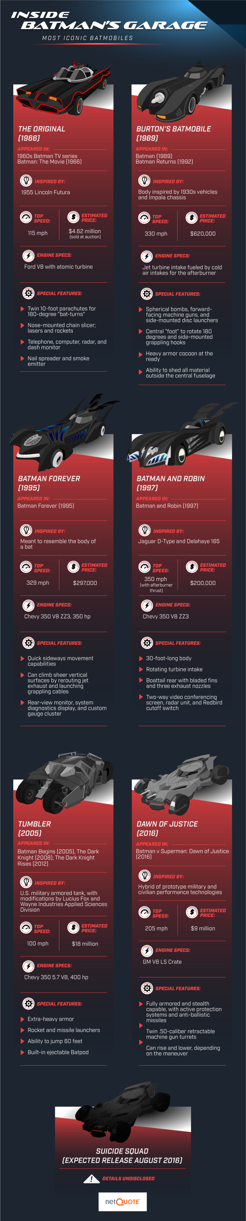What’s your favorite Batmobile? Check out how the Dark Knight’s rides have evolved over the years below.