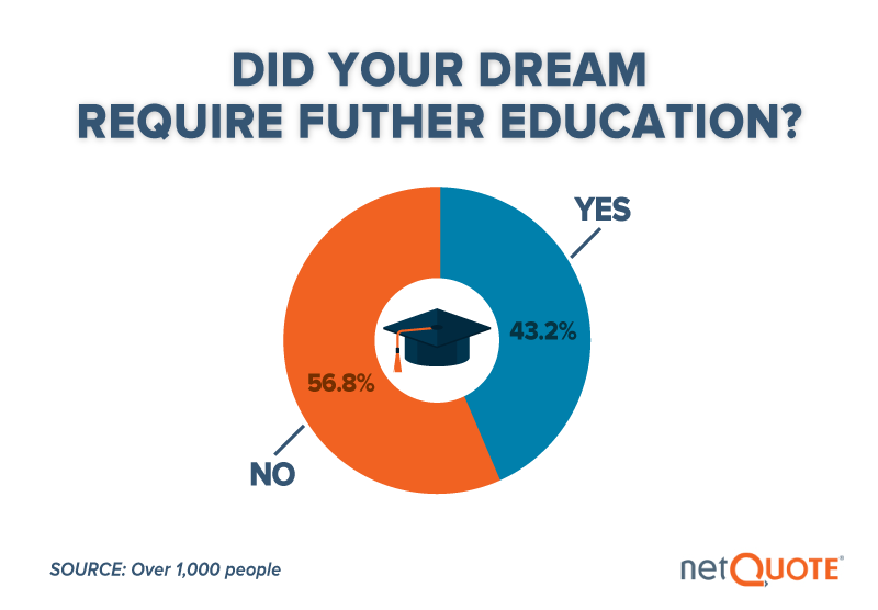 Of course, many drastic career changes often require new qualifications, including additional education in some cases. More than 43 percent of those who pursued their dreams did continue to their education to achieve that goal. This trend may account for the growing number of older adults in college classrooms currently. These days, more than a quarter of college students are 30 or older, often because they are seeking new careers.