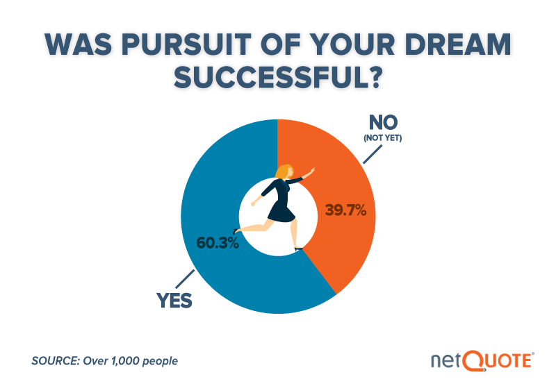 When we asked those who took a chance on their dream jobs about the outcome of their gamble, our results suggest that the risk pays off in most cases. About 6 in 10 respondents said they were successful in pursuing of their dreams, which should encourage those considering such a move currently.