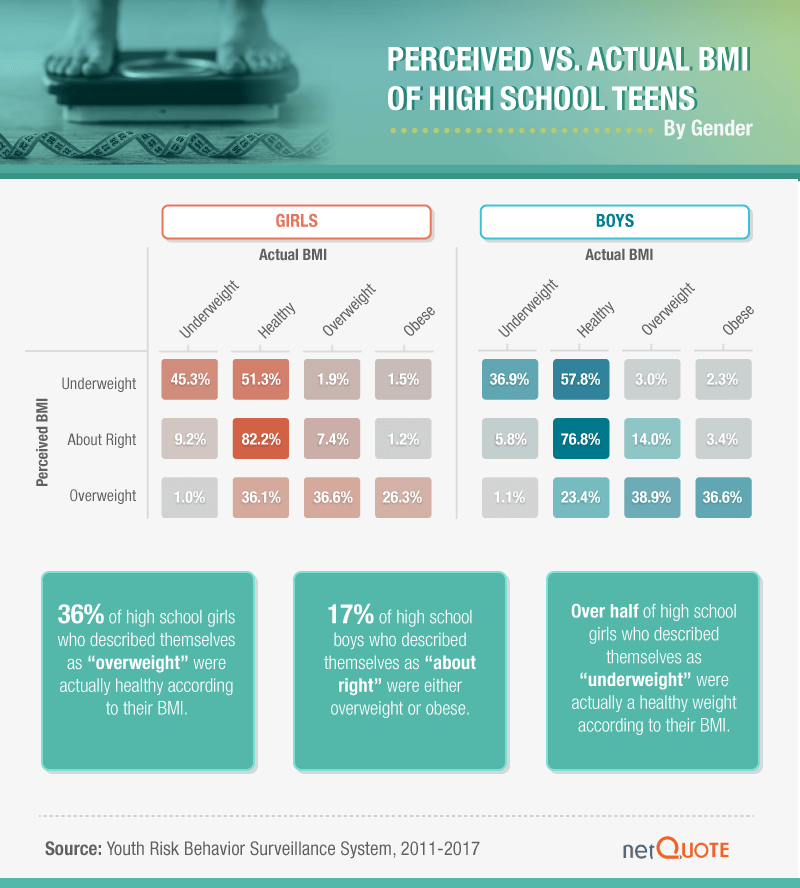Unfortunately, unrealistic body standards could be encouraging dangerous behaviors in teens looking to achieve a certain size or weight. Nearly 50 percent of teenage girls with a healthy BMI and 2 percent who were already underweight believed they needed to lose more weight to be healthy.