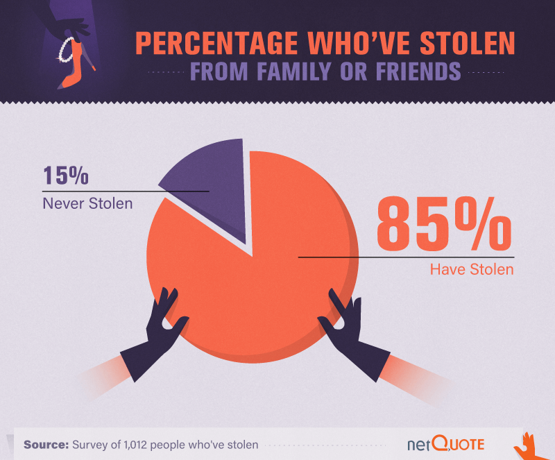According to our survey, 85 percent of respondents confessed to stealing from family or friends. So when your favorite perfume is suddenly a lot emptier than it should be, or you’re missing $20 from your wallet, it’s possible the perpetrator is living under the same roof as you.