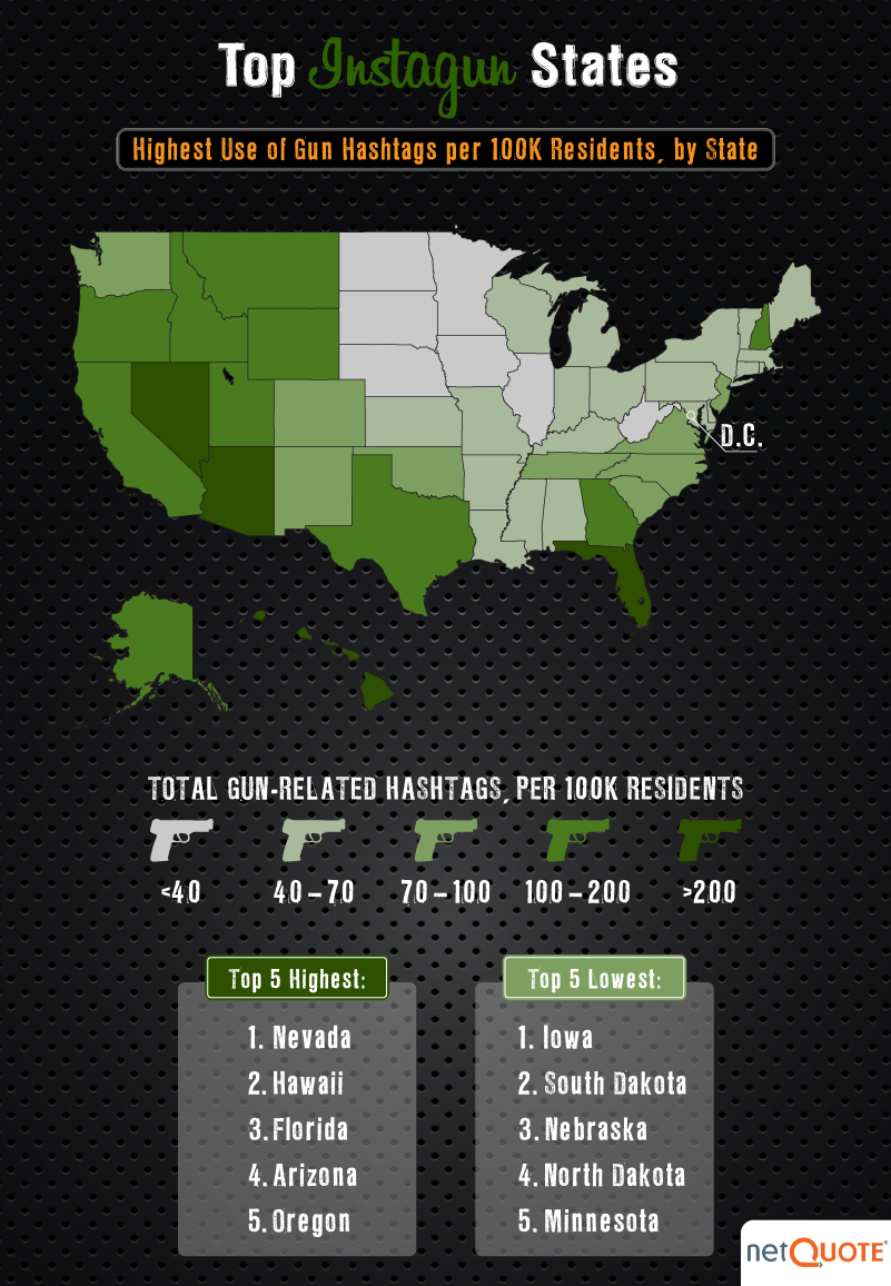 Gun-related Instagram hashtags and posts are undoubtedly present in states where arms ownership is a trigger issue. With the exception of states like Hawaii, where violent gun incidents are relatively low, #gun social media mentions mirror the nation’s views for better or worse.
