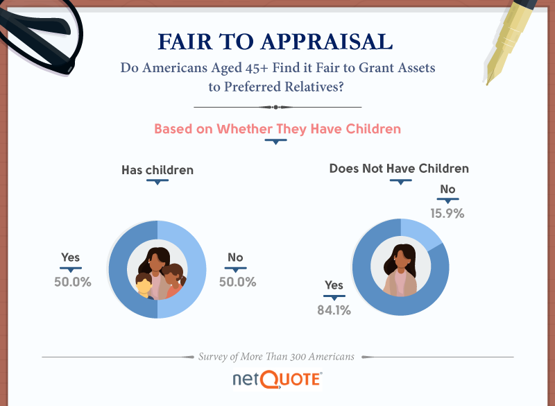 Of respondents with children, exactly half believed it was fair to distribute assets based on whom they liked more in the family.
