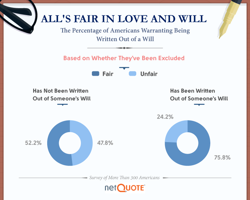 Of those who felt it was fair to distribute assets to whom they liked more in the family, nearly 76 percent had been cut from someone’s will.